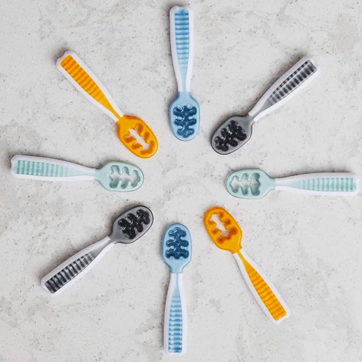 Foarte utile pentru bebelusul meu, atat ca rontaitoare in peiroada de eruptii dentare cat si la inceputul diversificarii. Le manuieste cu usurinta si baga singur lingurita cu mancare in gurita.